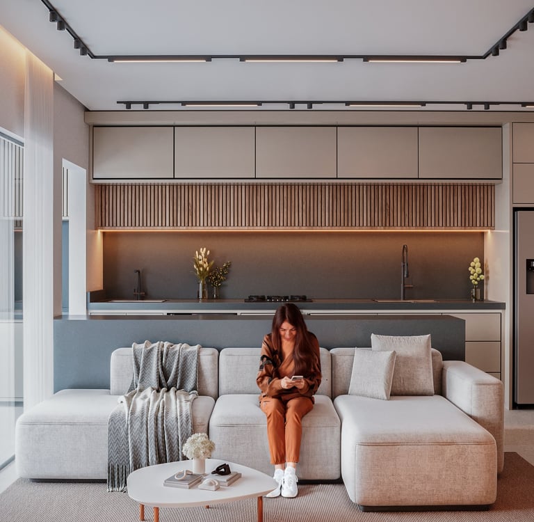 Neutros: Bege, areia, off-white e cinza continuam como base, proporcionando versatilidade, atemporalidade e amplitude aos espaços.